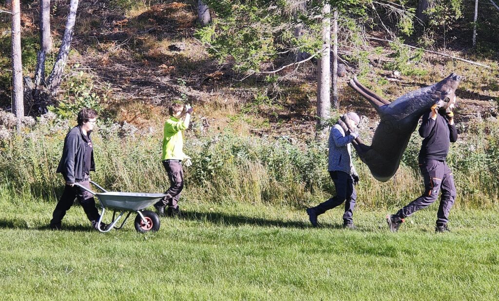 Ett tiotal medlemmar ställde upp för klubben på arbetsdagen. På fältet togs alla buttar in under tak och både fält- och jaktbanan tömdes på tapeter och snitslar. Tack vare att Blir startade på egen hand redan klockan 11 fick vi till och med in alla 3D-djur denna arbetsdag!