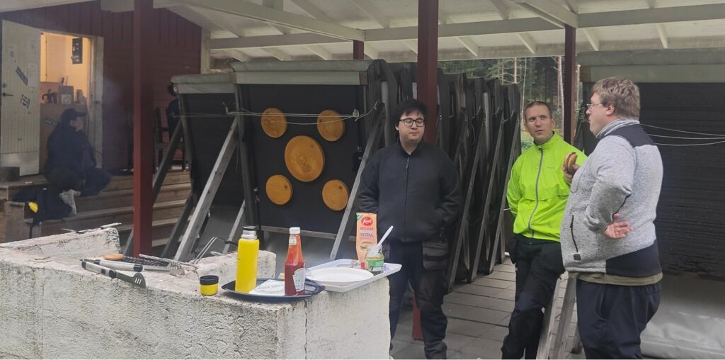 Välförtjänt fikapaus med grillat. Blair, Per och Henrik kan känna sig nöjda